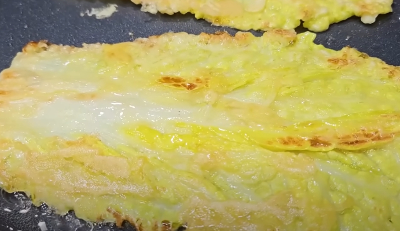 - 치즈 배추전: 뒤집은 뒤 피자치즈 소량, 뚜껑 덮어 치즈 녹이기.