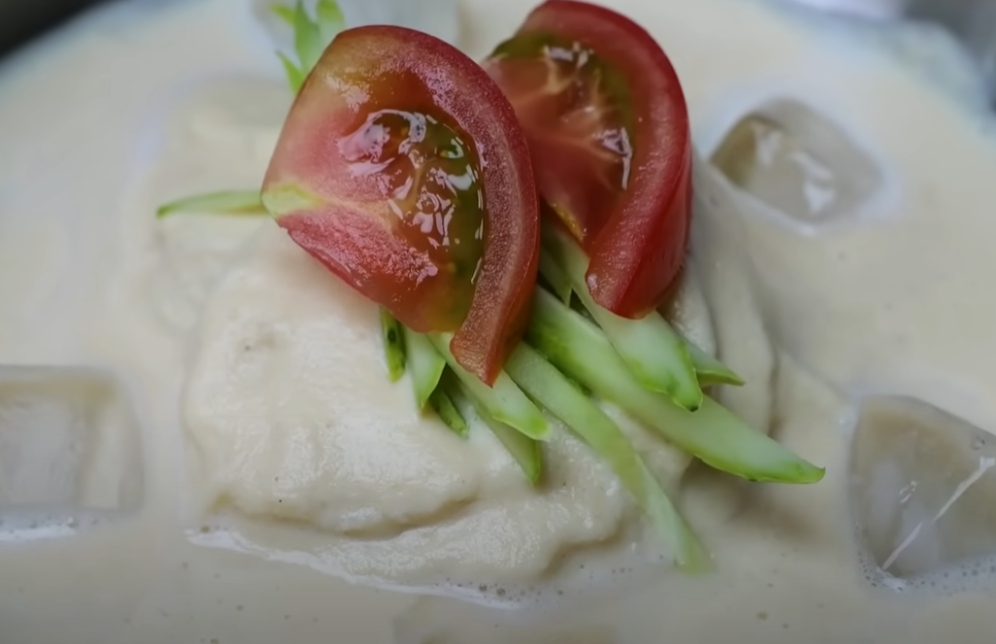 - 면 위로 되직한 콩국물을 넉넉히 붓습니다.